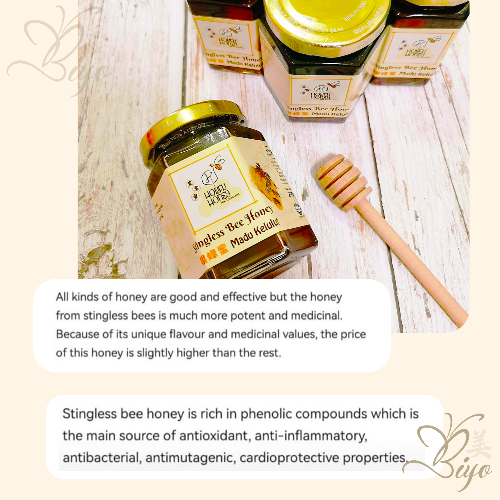 Houfu Stingless Bee Honey has a unique taste that is both sourish and sweet. It's perfect for adding to tea or coffee, or as an ingredient in cooking or baking recipes.