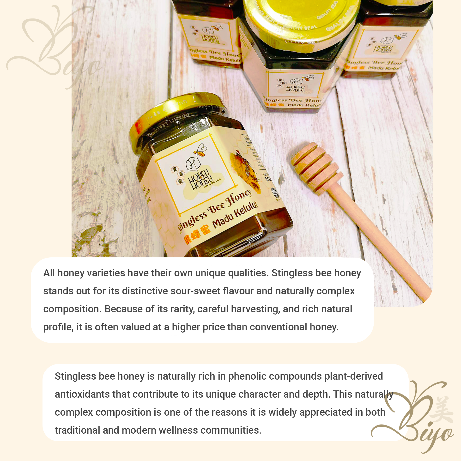 Looking for a naturally distinctive sweetener? Houfu Stingless Bee Honey offers a unique sour-sweet flavour profile that sets it apart from conventional honey varieties.